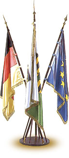 Фирма «Ларсен» изготавливает знамена с большой тщательностью, умением, искусством и любовью. Для изготовления знамен и штандартов используем только избранные благородные ткани, такие как, бриллиантовый бархат, атлас, флаговый репс.